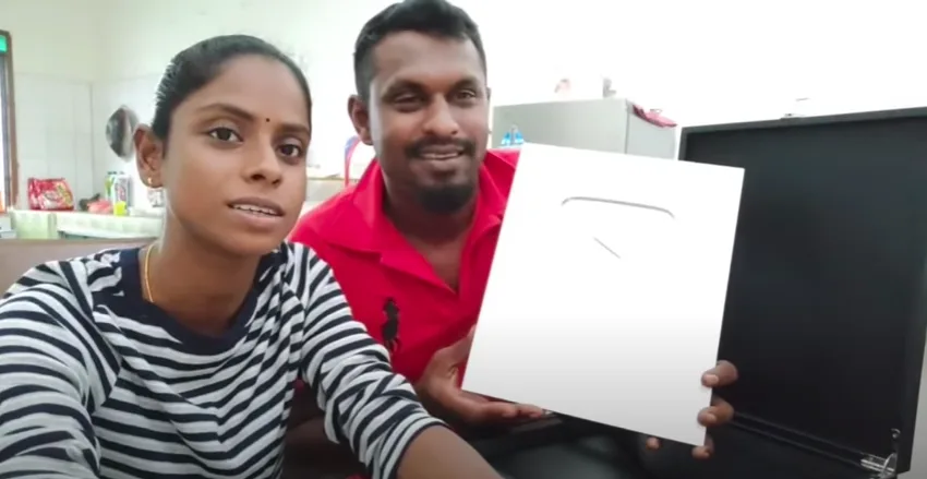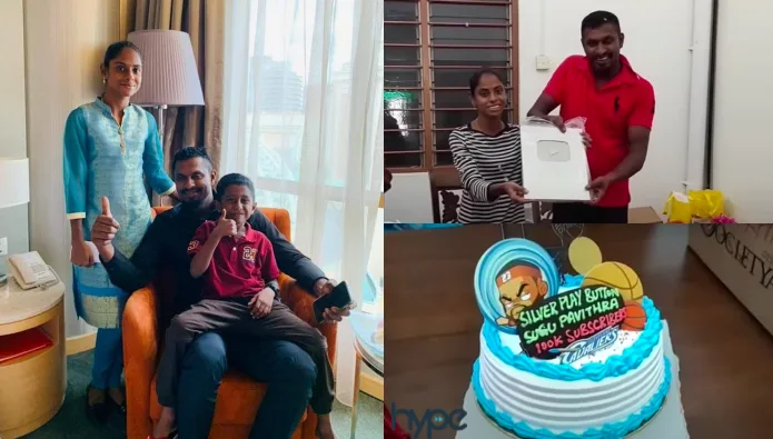Titled “Unboxing Silver Play Button”, the 11:31 minute video showed Sugu and Pavithra throwing a mini party with Kentucky Fried Chicken (KFC), chocolates, and a large blue cake with the words “Silver Play Button Sugu Pavithra”.