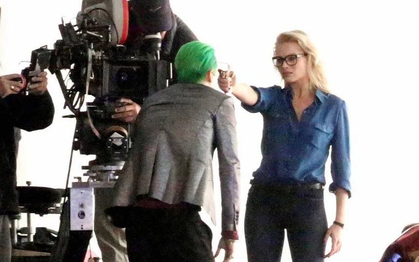 The footage, which was already removed by Warner Bros., showed Jared Leto sporting vivid bright green hair and wearing a flamboyant purple shirt and silver blazer for his role as the Joker. Margot Robbie, who will portray the Joker’s girlfriend Harley Quinn, stood in front of a fancy purple sports car demanding Leto’s Joker to get out. However, Robbie is wearing a normal outfit instead of the crazy outfit shown in the official cast photo.