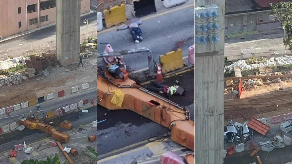 The Star reported that 2 construction workers were killed, while another 2 are seriously injured. The unfortunate driver, who is a Malaysian, was severely injured. The aforementioned 2 workers fell 120m from the construction site and lost their lives on the spot.