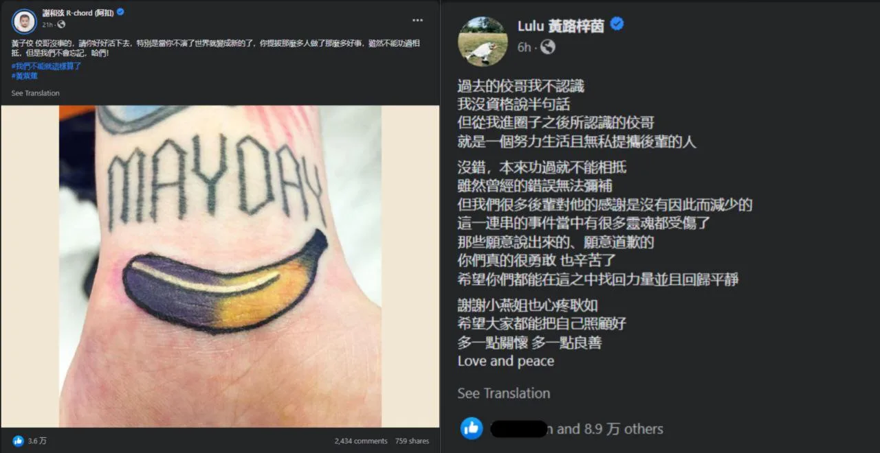 Sources: Facebook/謝和弦 R-chord (阿扣)/Lulu 黃路梓茵
