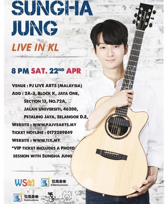 Wind Strings Music has released the ticketing info for Sungha Jung’s live shows in Malaysia. Tickets can be puchased via www.tix.my (Kuala Lumpur) and my.wsm.asia (Sabah).