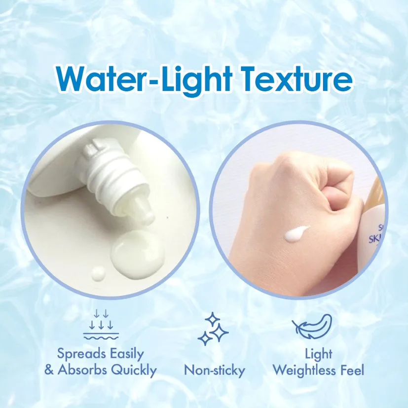 Presenting, Sunplay’s new, Skin Aqua UV Super Moisture SPF50+ PA++++ sunscreen. Identifying the harmful effects of the UV rays, this product was specially formulated with the innovative Solarex-5 Technology which provides a high UVA/UVB protection. This would subsequently provide protection against the blue light and infrared light which would reduce the visible signs of skin aging. Now, you could use your beloved devices and focus on your work without any stress of getting your skin damaged.