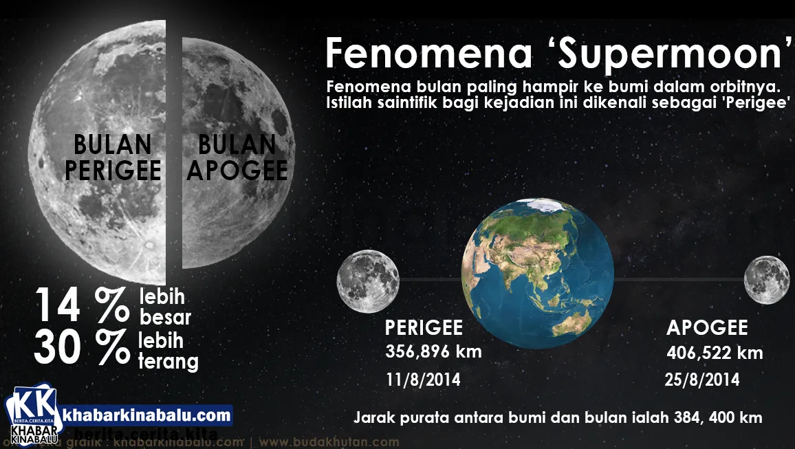 According to the National Space Agency (Angkasa), the “supermoon” phenomenon happens when the moon is at the nearest position to the earth, at 14% nearer and 30% clearer compared to other nights. It took place on 11th August (Monday) at 2:09am, a little after the moon was at a distance of 356,896km. If you missed it, here’s how it was supposed to go down: