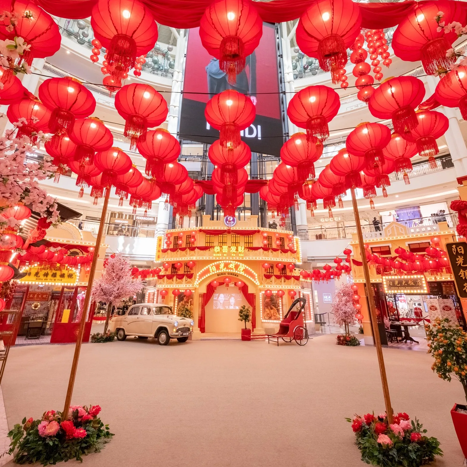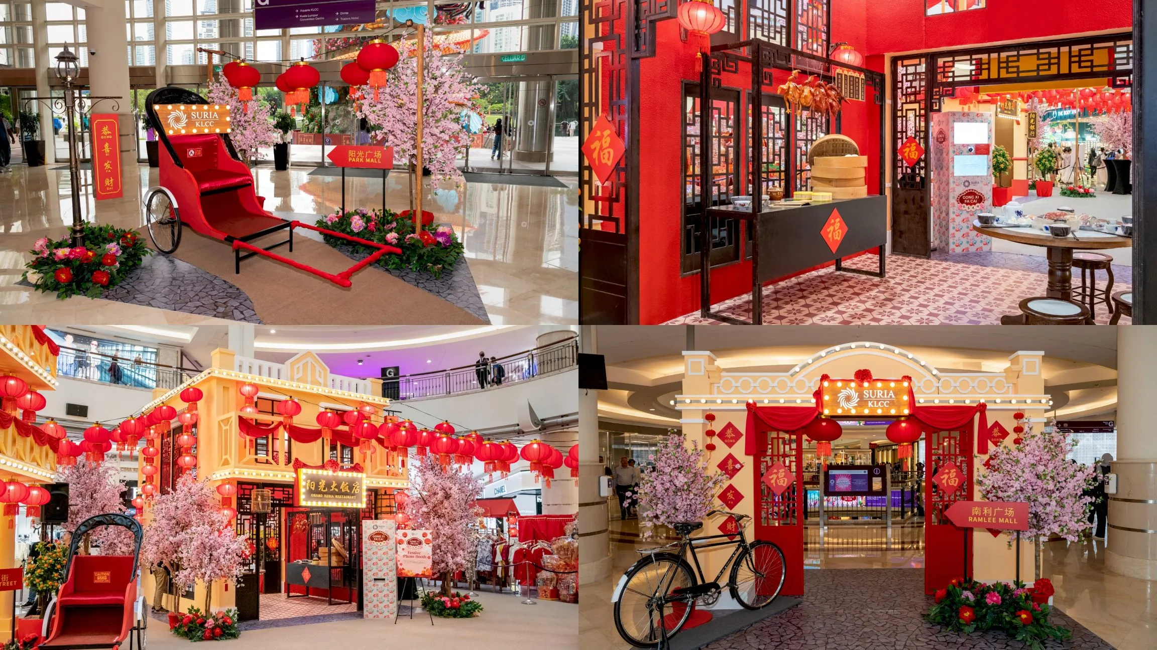At KLCC, shoppers can explore a lively old Shanghai street, complete with traditional double-storey shop lots. Among the engaging experiences, visitors can check out a beautifully adorned tailor shop showcasing the art of tailoring and the iconic cheongsam, and a restaurant featuring traditional reunion dinner dishes. The setting will also include rickshaws, a retro vintage car for photo opportunities, and old movie projectors playing classic clips, capturing the oriental charm of yesteryears.