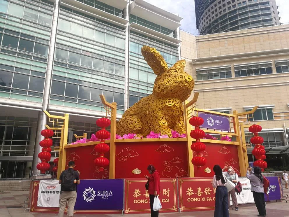 Suria KLCC has set their main centrepiece up in Sunshine Plaza as usual. At a glance, it seems fairly impressive. The large rabbit structure sitting on a platform is creatively constructed out of gold coins with red lanterns adding some pizzazz to the centrepiece.