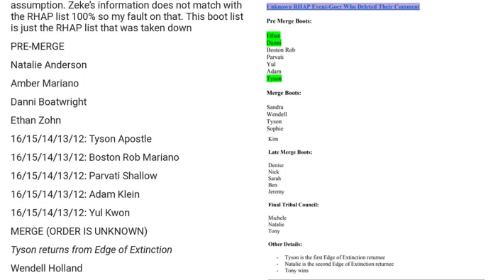 RHAP’s spoiler boostlist is apparently the most liable so far. Following Tyson’s exit, it seems like the next few winners to get the boot are (in no particular order) – Boston Rob, Parvati, Adam and Yul.