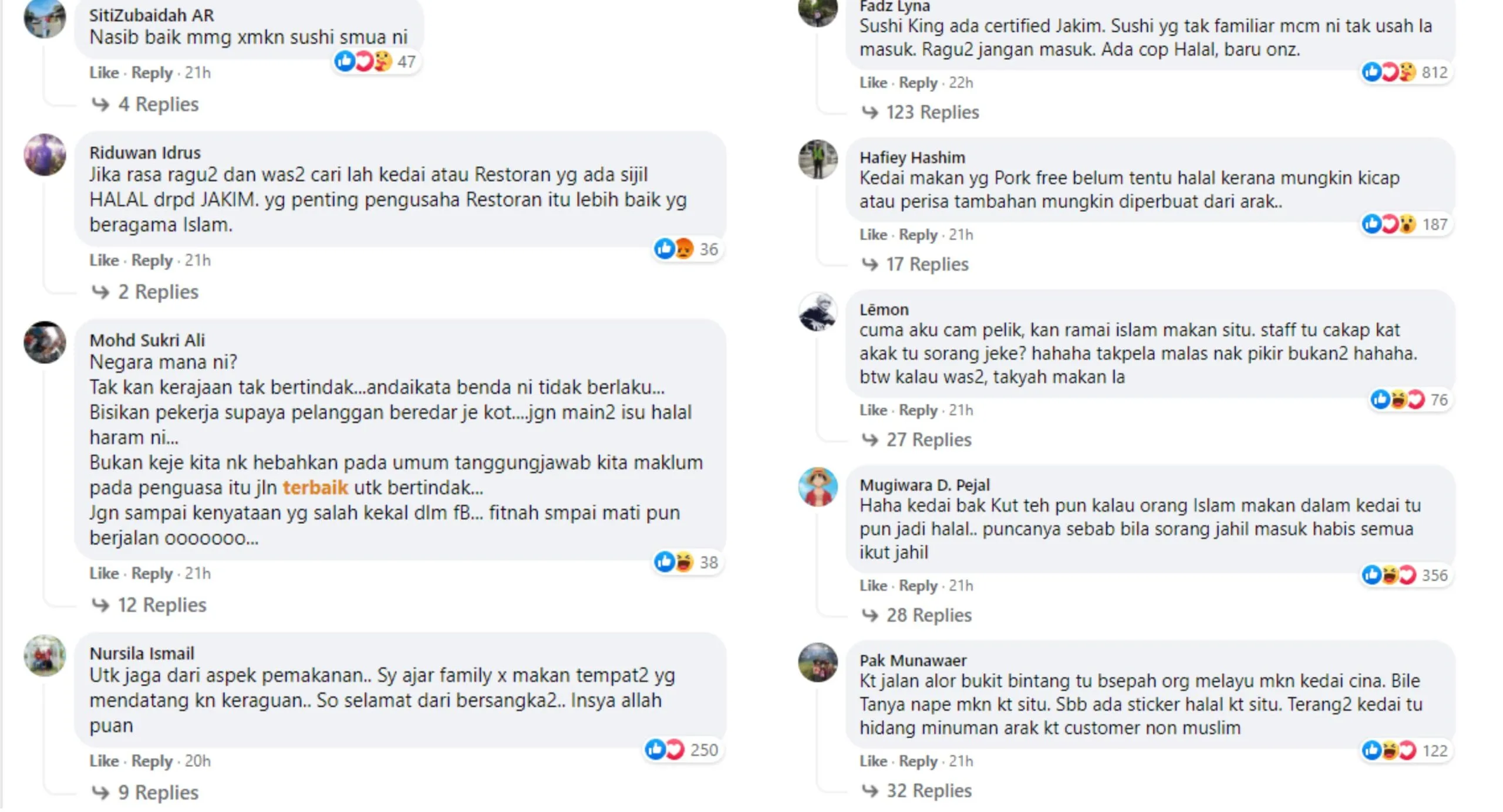However, a Sushi Jiro staff apparently informed her that they were serving pork. Emma was not allowed in because she was wearing a hijab and felt upset about the situation. Her husband was also disappointed at the restaurant for allegedly serving pork. Emma then advised most Muslims to be careful when choosing restaurants.