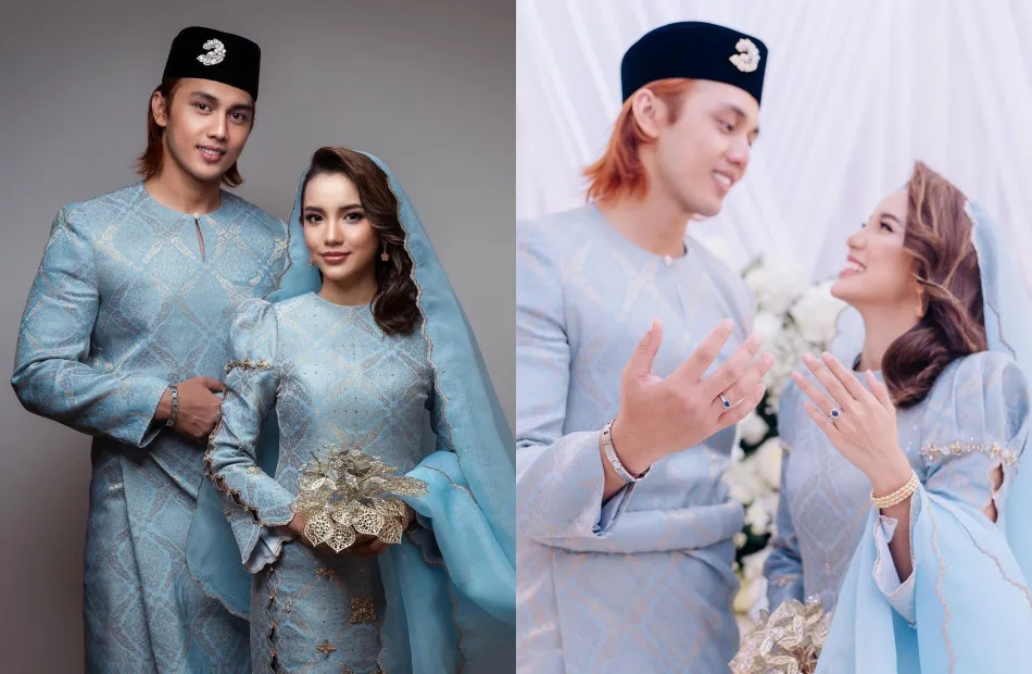In the pictures, Sweet (full name Farhana Qismina Supandi) and Adam looked dashing and stunning in their traditional sky blue-coloured songket outfits. Additionally, fans got to witness a closeup view of the lovebirds’ matching engagement rings, as seen in one of the several pics shared by the “Pink Smile” star, to which she accompanied with the hashtag “#AdamSweetEngagementDay”.