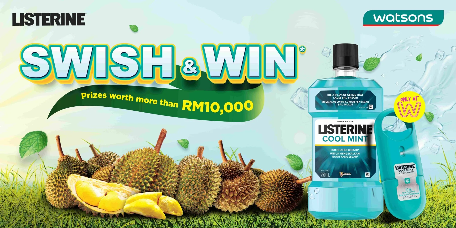 You can enjoy delicious durian while keeping your mouth clean and smelling great. Listerine and Watsons are inviting you to join the “Swish & Win” contest from 31st May to 30th June and be in line to win up to RM10,000 worth of prizes and enjoy a durian feast that would be the envy of all! As Malaysians, we share and show our love to others through food. As you may know, durian season is upon us – which brings us to the obvious dilemma…