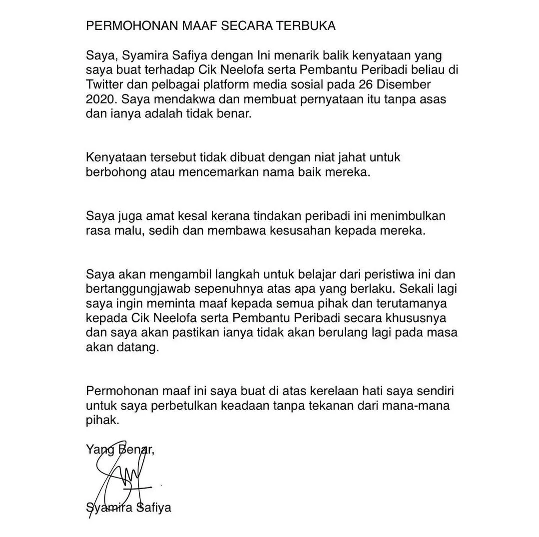 Syamira Safiya Apologises For Lying About Neelofa & PU Riz