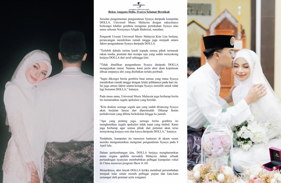 In the statement posted over the weekend (21st May), UMM confirmed that one of the main factors why Syasya left DOLLA was to settle down with her now-husband, whose name was never mentioned. “May their marriage last till Jannah and we hope that this wonderful news will stop all the inaccurate speculations that have arisen,” the company wrote.