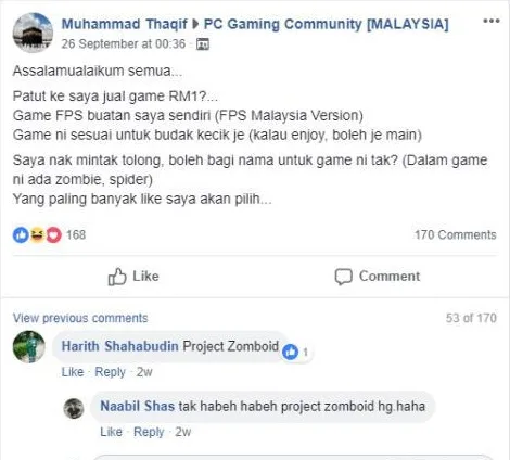 In the local gaming community, a Malay boy has gotten many people’s attention when he posted if there’s anyone who would be willing to purchase his self-developed game for RM1.