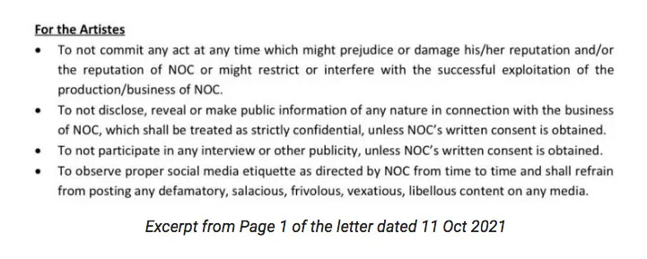 On 11th October, present and former NOC employees were issued a notice (signed by Sylvia) demanding their compliance and the requirement to get NOC’s consent before conducting any external communication. Grace, Isabelle, and Nicole confirmed this on their personal IG Stories.