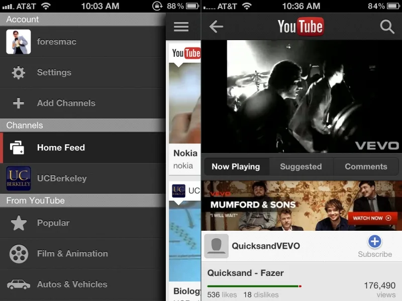 - New YouTube channel guide: Swipe your finger from the left edge of the screen to reveal a guide with your subscribed channels on YouTube, giving you instant access to everything from Astro Gempak to YOMYOMF.