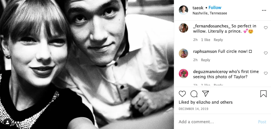 For the uninitiated, Taeok was previously a backup dancer for Taylor’s “Red” tour back from 2013-2014. It seems that the duo have a longtime relationship. He previously posted a cute throwback of a black and white picture of them together with the caption: “A lifetime ago” with the hashtag #thirtyflirtyandthriving.”