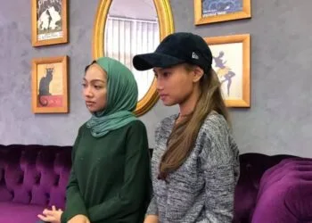 Former finalists of "Dewi Remaja" Erni Nurshahira binti Khairul Zaman, 23 and Faizni Fazreen Fazera binti Faizul, 20, or better known ...