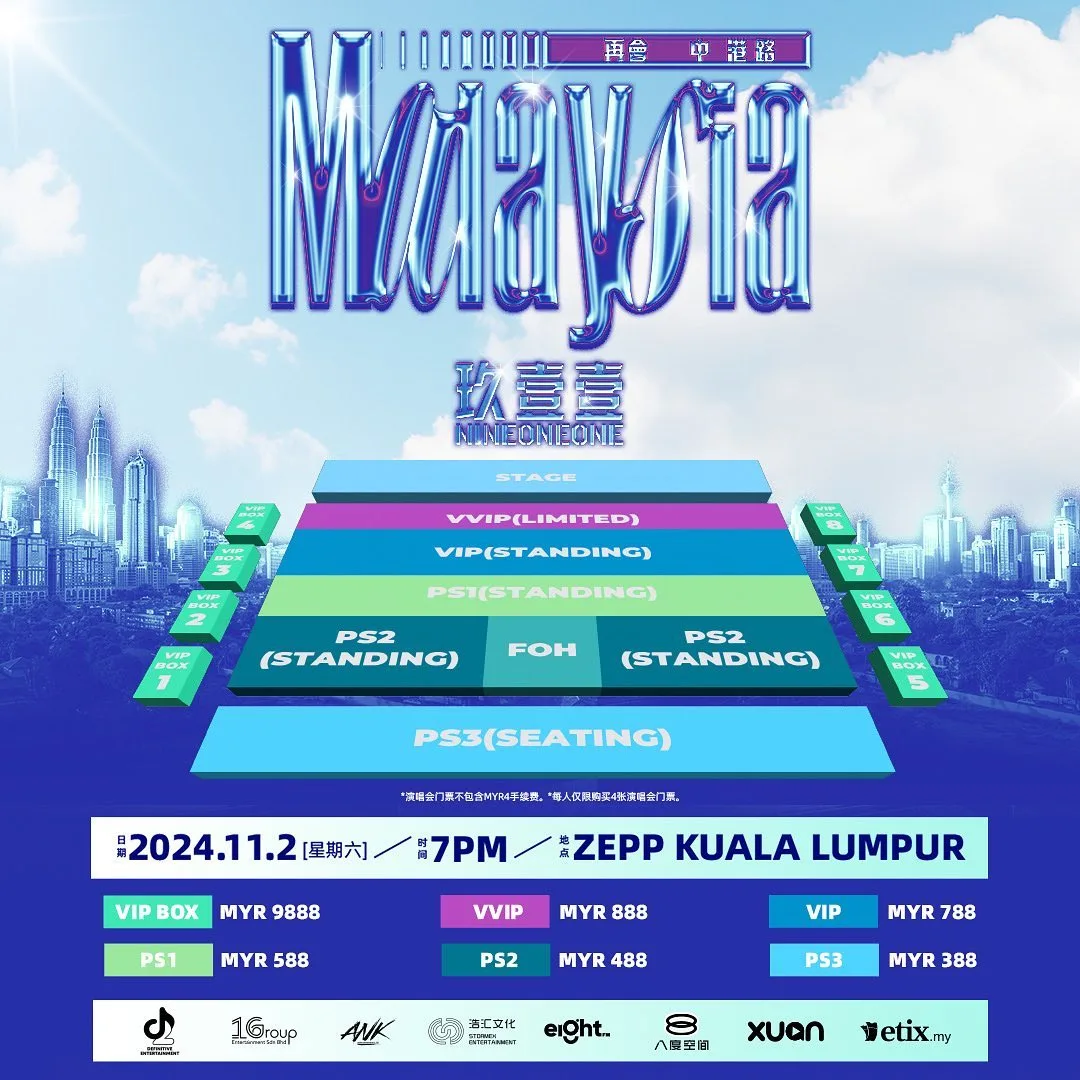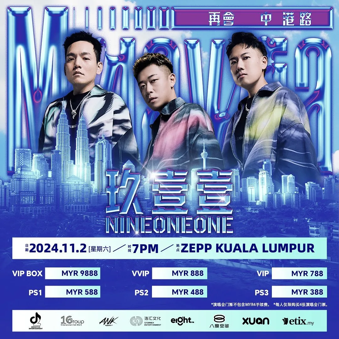 The trio, consisting of members Daniel Hong (洪瑜鴻), Ken-G (廖建至), and Onion (陳皓宇), shared the news on their social media pages. The upcoming Nine One One concert in Malaysia is part of their ongoing Asia tour. The concert is set for 2nd November 2024 (Saturday) at Zepp Kuala Lumpur. The concert is jointly organised by D2 Definitive Entertainment and 1 GROUP Entertainment and supported by etix.my as the official ticketing partner.
