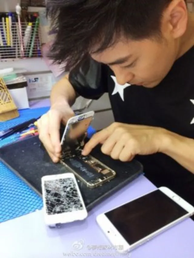 The actor-singer celebrity posed for the camera holding what is believed to be Apple’s upcoming yet still unreleased iPhone 6. Unreleased and unseen until he went ahead to flaunt the pictures, that is. For some reason, in some of the pictures, Jimmy is shown repairing an iPhone 5S with a shattered display and right next to it is the 5.5” iPhone 6.
