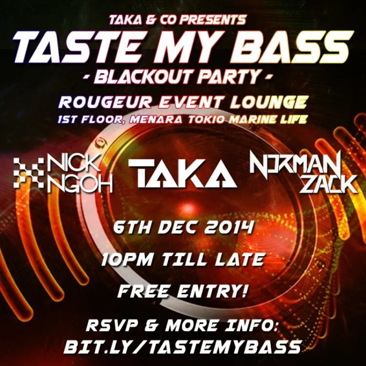 Featuring a night filled with only the best EDM music by taKa, Norman Zack and Nick Ngoh, “Taste My Bass” is happening on December 6th at Rougeur, Kuala Lumpur.