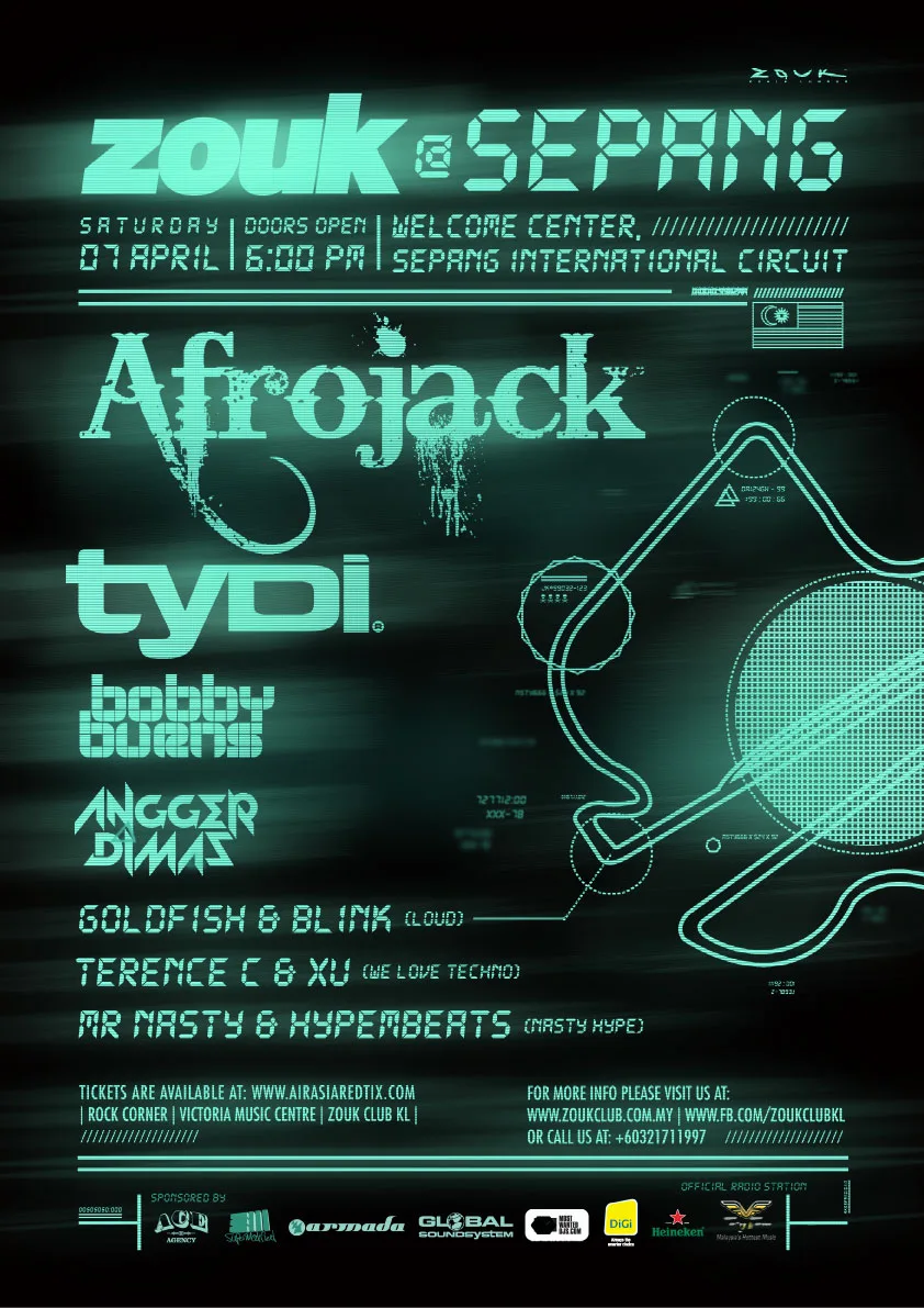 Mark your calendars because on the 7th of April 2012 (Saturday), music lovers have a date with Zouk. Except, we’re not talking about the Zouk Club Kuala Lumpur that we’ve all grown to love (like it’s our motherland) over the past decade. We’re talking about the great big Zouk outdoors in our very own Sepang International Circuit.