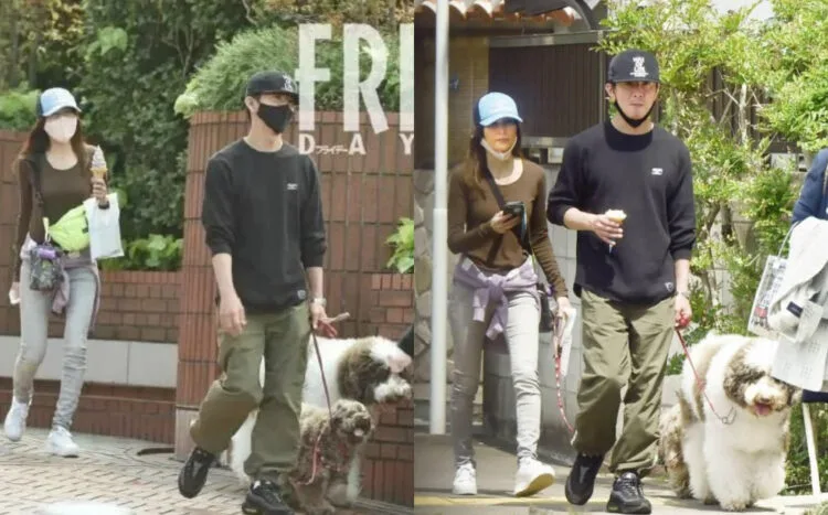 The high profile couple weren’t alone, they were seen taking their pet dogs on a stroll while enjoying an ice cream along the way. Both Takuya Kimura and Shizuka Kudo were dressed casually in long sleeve shirts, and long pants.