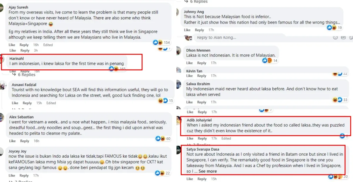 In the comments section, some argue that it’s not a matter of whether or not the dishes exist in those countries but rather how popular they are there. You can also see some netizens including one Indonesian suggesting that even Indonesians are unfamiliar with Laksa and that the food is more popular in Malaysia than it is in Indonesia.