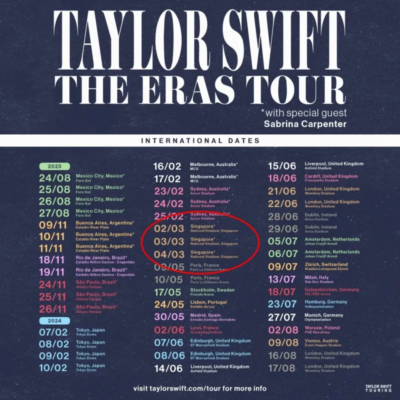 Yesterday (Tuesday, 20th June), Taylor Swift announced the new international dates for her record-breaking “The Era’s Tour”. Malaysian Swifties were obviously upset that their favourite artist will not be performing on our shores but they may still have the chance to purchase the tickets to see her live in Singapore once tickets are available.