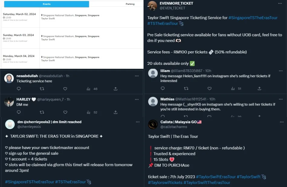 Other than that, some suspicious accounts replied to fans’ tweets that they were looking for ticketing services to secure their seats for at least one of the three shows but we all know how that went down last time with the Coldplay tickets. Below are screenshots of possible scalpers, “ticketing services” and websites that we’ve found so far: