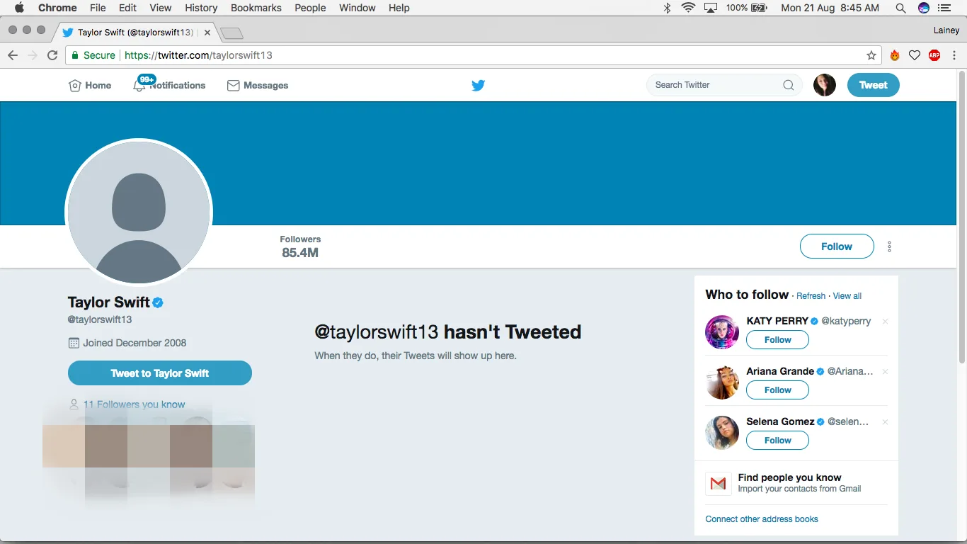Gone. Not a trace. Even her profile pictures have been removed and replaced with the respective social media platform’s generic profile picture. She’s also no longer following anyone on Twitter or Instagram – a stark contrast to the huge following that both accounts have amassed. Taylor has always prided herself in her super close relationship with her Swifties, so it’s puzzling as to why she would delete all evidence of her interactions with them.