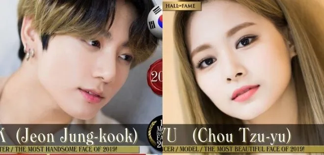The most handsome man as voted by the public is Jungkook (정국) from K-pop sensational group BTS. Meanwhile, TWICE visual member Tzuyu (쯔위) managed to land the top spot for the most beautiful woman in the world.