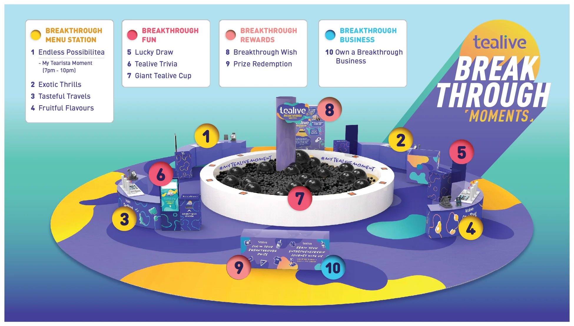 Having achieve 222 outlets throughout the country, Tealive is giving customers a chance to fulfil their breakthrough wish as a token of appreciation. The festival is open to the public. In conjunction with the celebration, Tealive has set up 5 festival attractions that you can look forward to:
