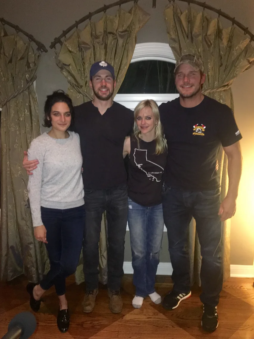 “I didn’t know what to expect when I met Chris. I was a little scared because I kind of felt like, Well, I don’t know him. He’s a giant man with huge muscles and he’s Captain America. How could we ever connect? [But the] first night that we hung out, I was like, Wow, I could hang out with Chris for, like, 90 hours,” said Slate during last month’s podcast.