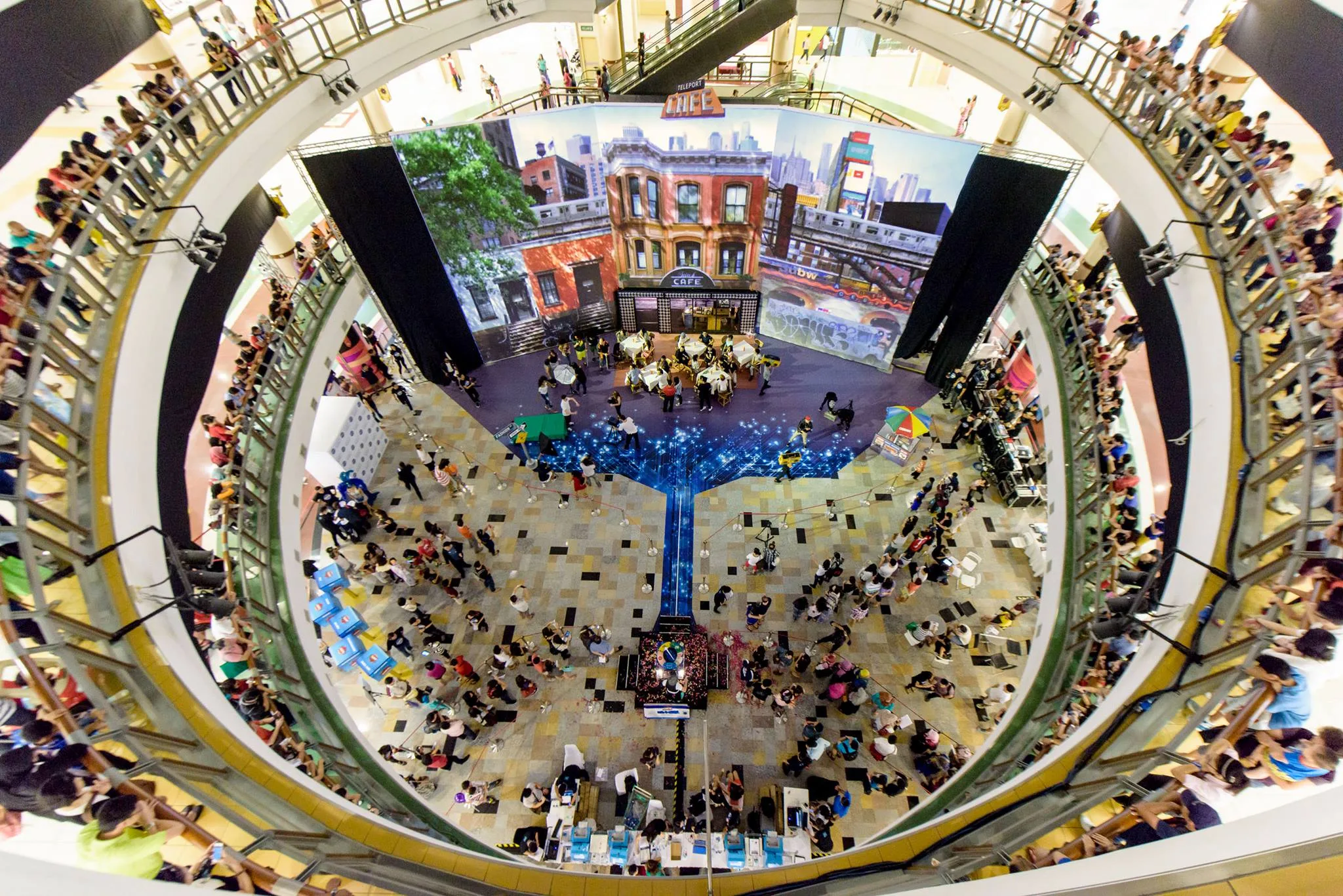 The Teleport Café event, which took place on 18th October 2014 at One Utama New Wing’s Oval Concourse, featured a fully operational café built into a set of giant screens that projected cityscapes shot around the world, expertly curated by WE ARE KIX.