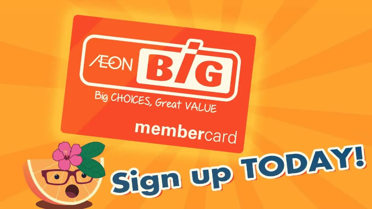 Note: You won’t receive Aeon Big points when you purchase cigarettes, mobile prepaid top-ups, gift cards etc. Registration for an Aeon Big Member Card is free.