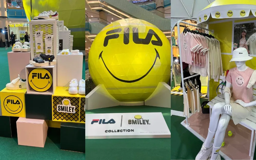 We checked out the FILA x Smiley pop-up at Sunway Pyramid Shopping Mall! The pop-up celebrates the collaboration between sportswear brand FILA and the Smiley brand, as they launch the new FILA Tennis Club collection. Upon entering the mall’s Blue Atrium concourse, a giant smiling tennis ball installation greeted us. We also got to look at all the stunning pieces from the newly-launched collection.
