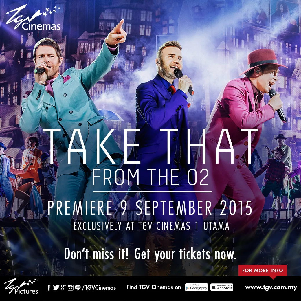 With the option of the premiere or standard screening, music lovers and fans of Take That can enjoy the live recording at one of the below TGV outlets: