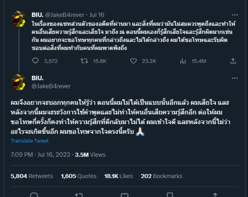 While he hasn’t specifically spoken up about the alleged messages relating to the K-pop idol, Buil Jakapan did, however, tweeted an official apology a week ago regarding the series of leaked messages that have been circulating on the internet, admitting that there is at least some truth to them.
