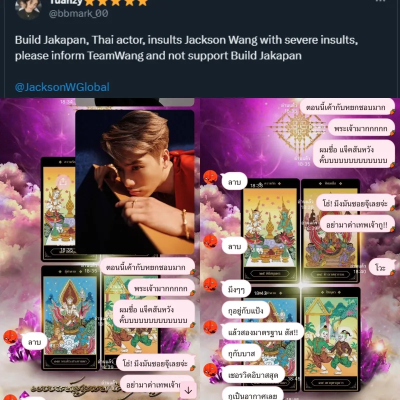 Over the weekend, Twitter user @bbmark_00 posted screenshots of leaked private messages allegedly between Thai actor “Build” Jakapan Puttha and an unspecified individual. According to the tweet, it was said that the actor was insulting GOT7 member Jackson Wang by calling him ugly in the messages.