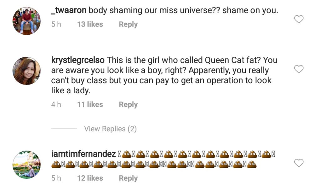 Neither Catriona or Coco have responded to the issue, but pageant fans have demanded Coco to publicly apologise to Catriona.