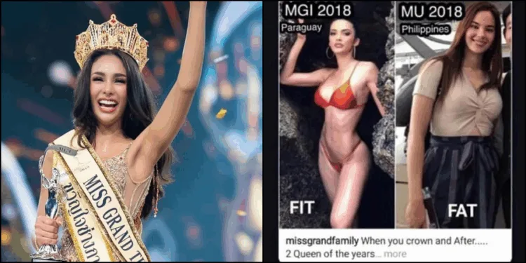 The Thai queen has gained flak after sharing a story on her Instagram where she compared Catriona to Miss Grand International 2018 Clara Sosa from Paraguay, labelling Clara as ‘Fit’ while Catriona as ‘Fat’.