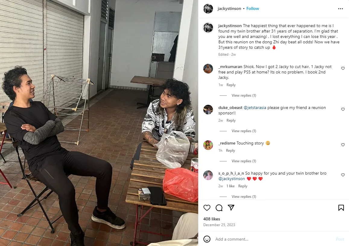 Jacky however had been told about his twin brother eleven years ago, right before his father passed away. His father had also been the one to tell Jacky about his Thai lineage. Jacky then spent years searching for his twin, to the point where he wondered if his parents had got it wrong. “I thought maybe this one is just a legend. Just a story,” he told Mothership.
