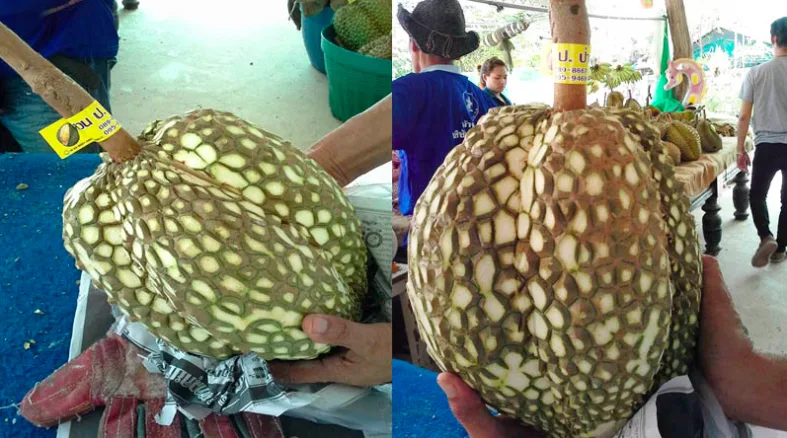 The durians, which are sold by Por Pala-U Farm in the beach town of Hua Hin, have actually been around for a while now. Farm owner Siwakapon Rattanarungrueng said that he has been selling thornless durians for over 5 years.