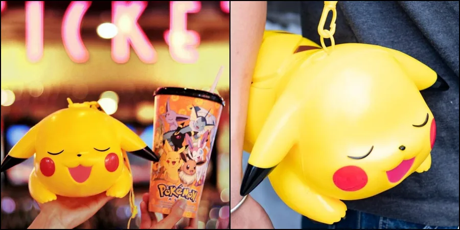 Similar to the Hello Kitty popcorn bucket, the Pikachu bucket comes with an adjustable logo strap you can carry over your body. Also, the bucket looks moderately large enough to hold your other essentials such as phone or purse so you can use it as an everyday crossbody bag!