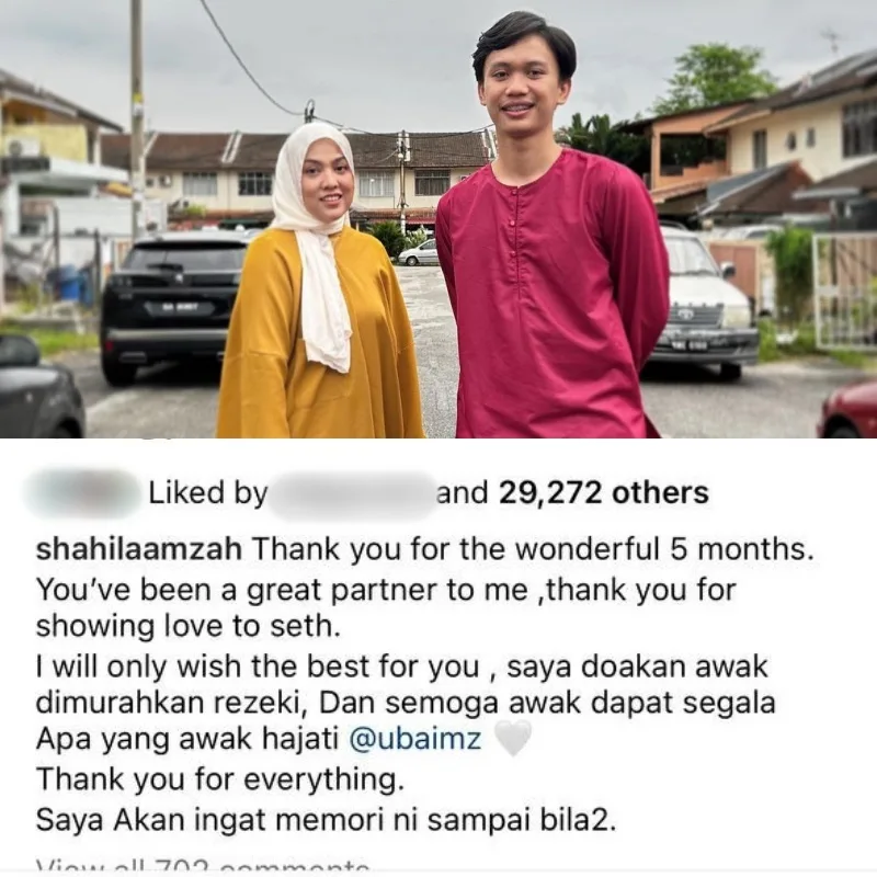 Shila Amzah posted a photo of her and Ubai together on her Instagram with a caption that reads, “Thank you for the wonderful 5 months. You’ve been a great partner to me, thank you for showing love to Seth. I will only wish the best for you and may you be blessed with everything you wished for. Thank you for everything. I’ll treasure these memories always.”