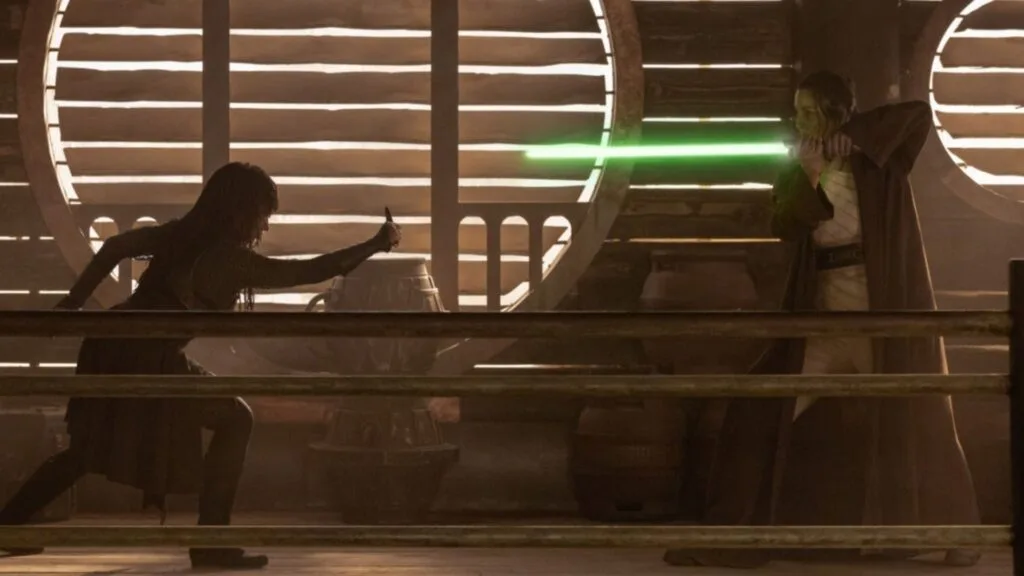 Star Wars is known for the lightsaber, and though each choreographed sword fight is a visual delight, we cannot understate how much of a breath of fresh air a sabre-less fight truly is. The acolyte, in the Star Wars universe, is said to fight without a weapon in order to stand a chance against the Jedi, while the Jedi will not draw their blade unless their adversary has one or it is with the intent to kill. This creates an amazing back-and-forth choreography where the dark-side user instead reaches for the Jedi’s lightsaber while the Jedi is deflecting and dodging all their attacks and advances. With that in mind, it would be safe to speculate that we won’t see a full-blown light sabre fight until the end of the series or some major conflict arises.