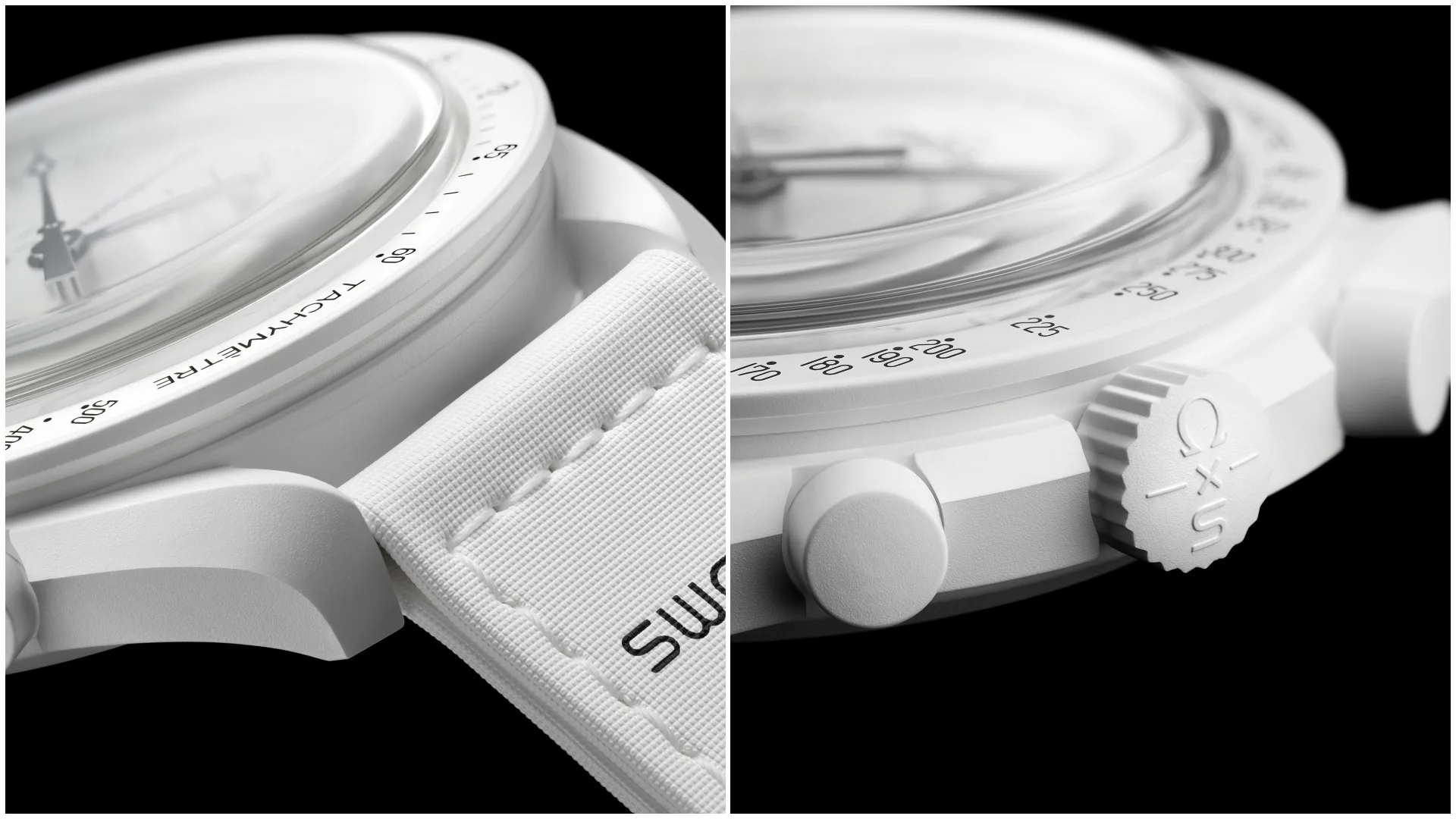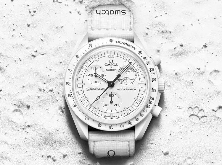 Two years after the launch of the OMEGA X SWATCH collaboration, a new non-limited watch has been added to this iconic collection. Just like the eleven Bioceramic MoonSwatch models, which depict the planets, and the eleven Mission to Moonshine Gold models, this new watch is equipped with the chronograph function. As a cherry on top, it also features a moon phase function, probably the most poetic of all watch complications. Hence its name Full Moon and its all-white color. For the first time in its history, Swatch has combined a moon phase with a chronograph.
