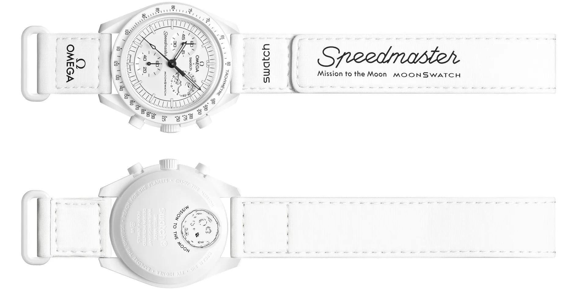 OMEGA’s legendary Moonwatch is a must-have for collectors. Swatch’s Bioceramic MoonSwatch Collection makes this iconic model accessible to fans worldwide. The moon phase version is the perfect reflection of Swatch’s zest for life and philosophy of innovation. Like all the models of the OMEGA X SWATCH collaboration, the Bioceramic MoonSwatch MISSION TO THE MOONPHASE is made from the brand’s patented Bioceramic, a unique mix of two-thirds ceramic and one third biosourced materials produced from castor oil.