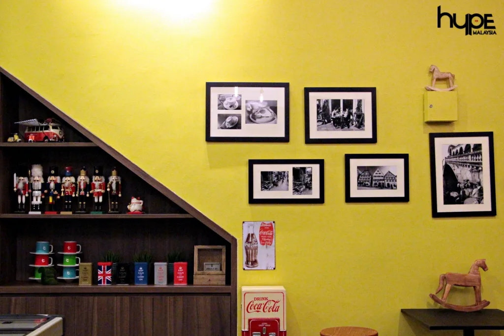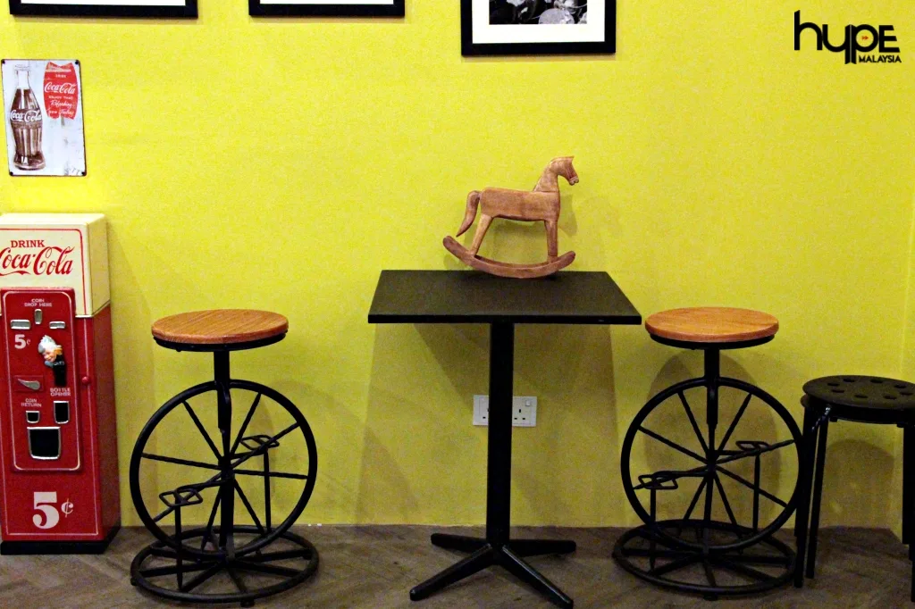 Stepping into the cafe is a bliss as patrons will find themselves amazed by the portraits and posters hanging on the walls, as well as the cute vintage toys that are placed on the shelves. The yellow walls and cool typography posters certainly allow for a fun and cheerful vibe. The cheerful vibe also extends to the outdoor area, where patrons can smoke while enjoying the peaceful scene of the cafe.