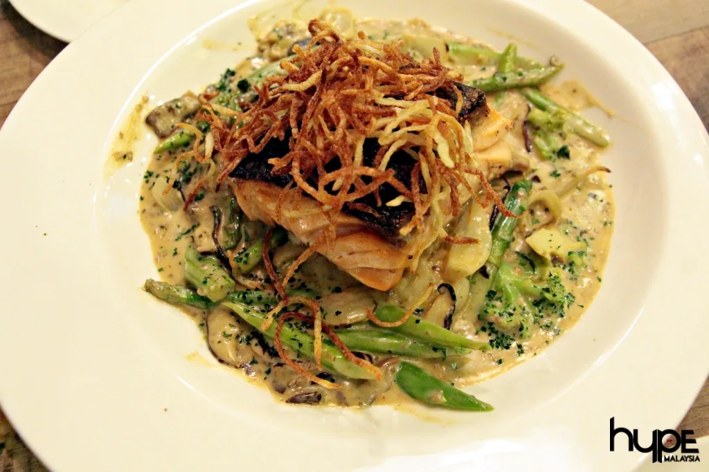 For starters, we had leek and potato soup which was complimented with a piece of garlic bread at the side. What seems like a simple soup turned out to be one of the best dishes to warm us up on a rainy night. The texture of the soup is very creamy but it isn’t too lumpy too; it’s just very smooth and addictive to drink! Cheekily named “It’s a Wrap!”, another appetizer we’ve tried is the vegetarian wrap that is filled with vege and avocado in a special orange and berries dressing.