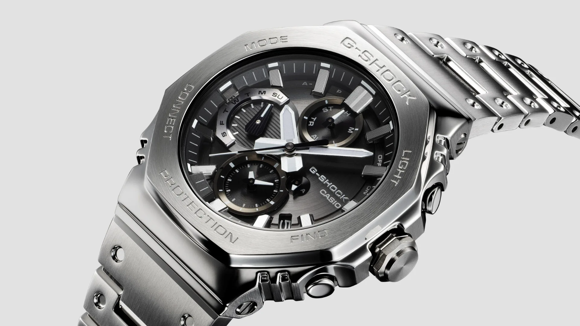 The new analogue full-metal GMC-B2100 is a chronograph timepiece in the 2100 Style, which is known for its iconic octagonal bezel.